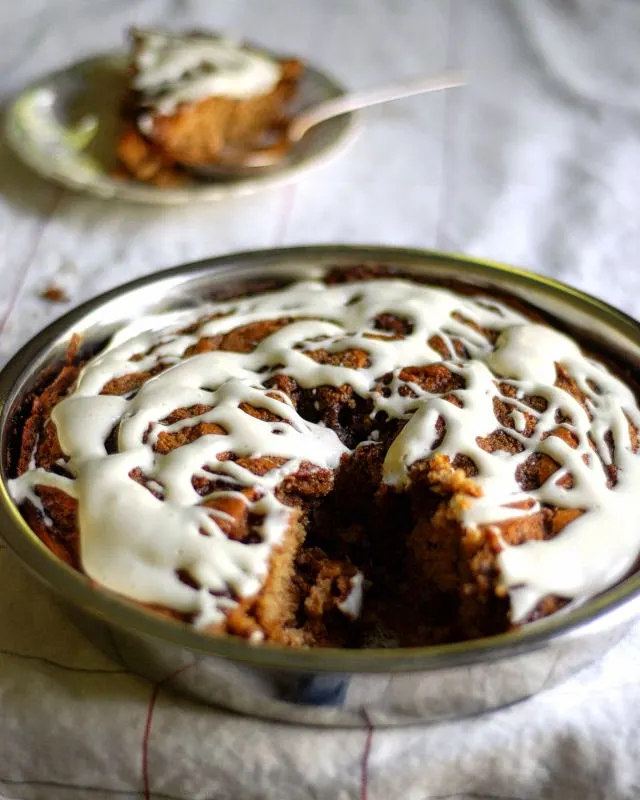 This cake definitely fits the bill. A soft, cinnamon-scented batter is filled with buttery, sugary swirls. Top it off with a drizzle of maple and cream cheese frosting, and you have one delicious treat.