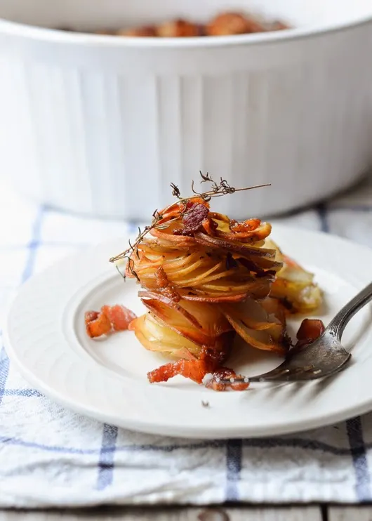 I must admit that the biggest selling point for this dish is the presentation. All the thin, crispy slices of potatoes look so pretty and impressive.