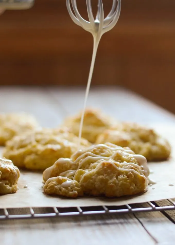 - Once the scones are completely cool, drizzle with the glaze. Store any leftovers in an airtight container.